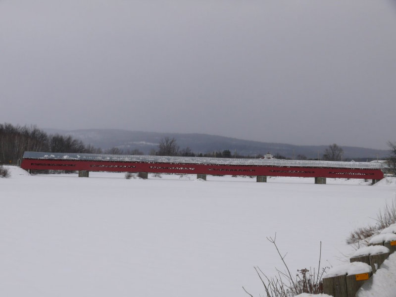 Au retour, nous nous arrêtons pour admirer le Pont Marchant, le plus long pont couvert de Québec.