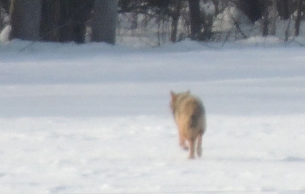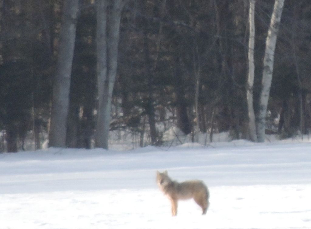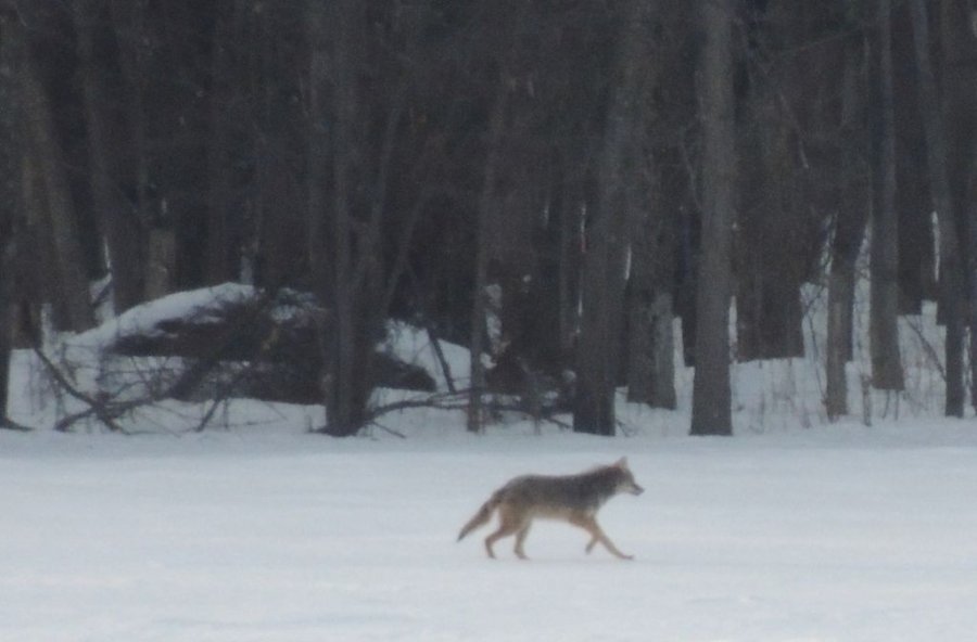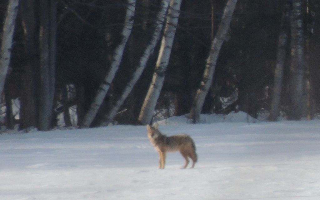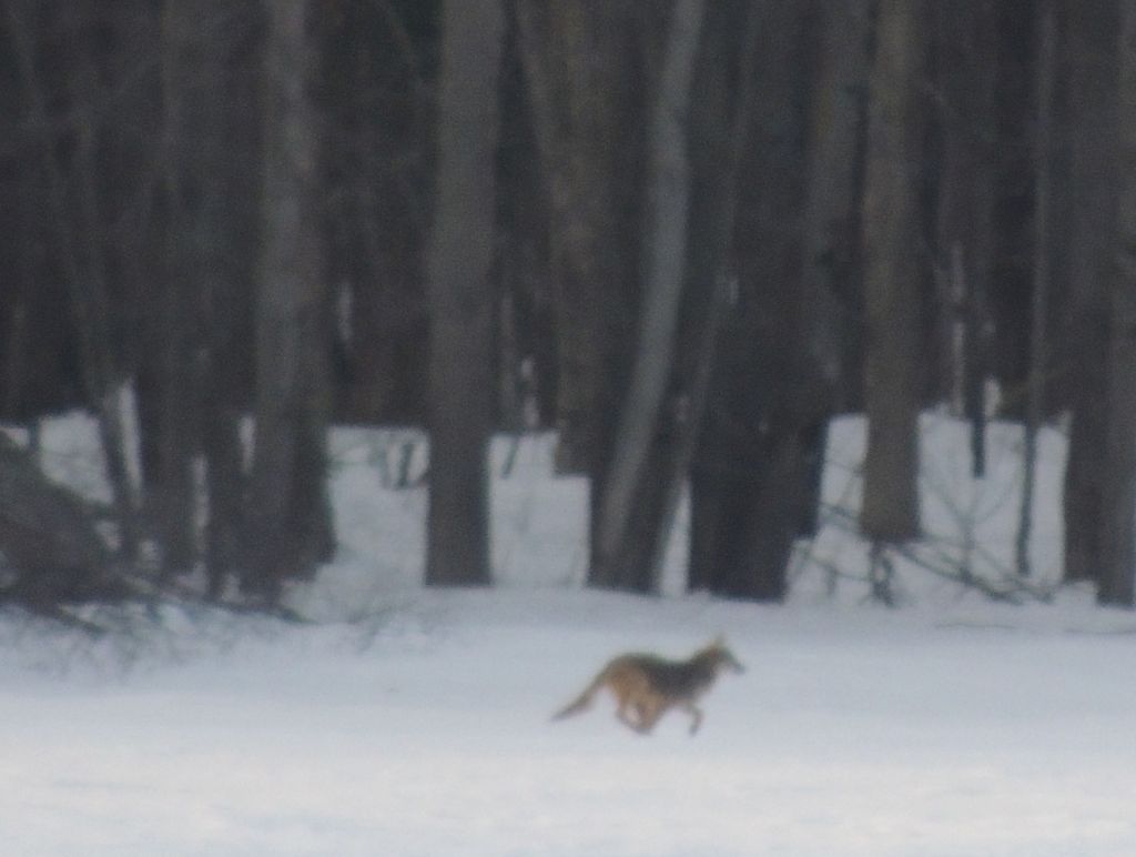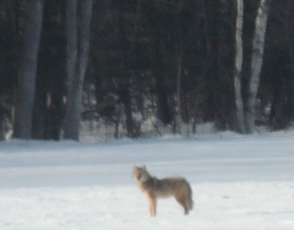 Quelques kilomètres plus loin, à 520 mètres environ de la piste, un coyote solitaire se promenait. Les photos sont à la fin du diaporama. Elles ne sont pas géniales vu la distance mais on le voit bien.