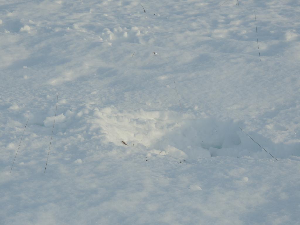 On est arrivé à un endroit ou le sol avait été creusé par des cerfs de Virginie en quête de pitance.