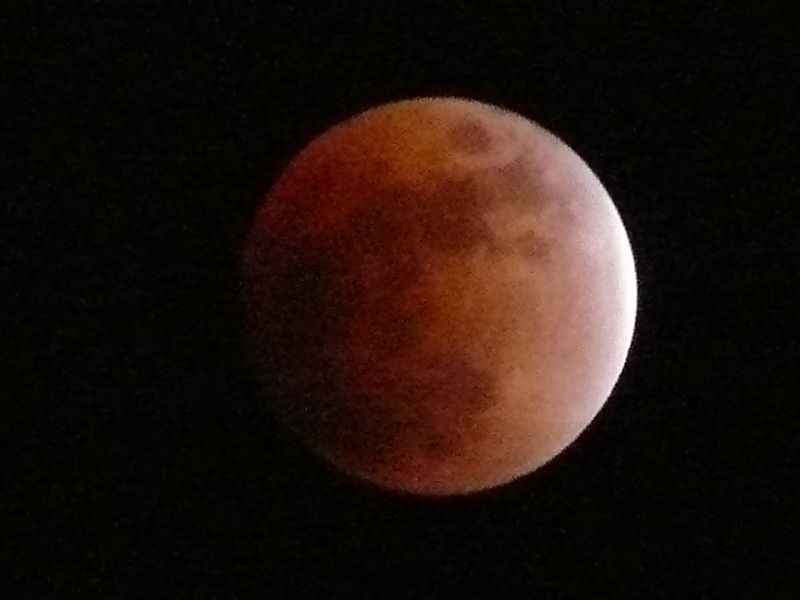 Le ciel était dégagé et il faisait un froid terrible, un bon moins 20 au moins. La Lune avait une teinte rouge sombre et un côté plus clair, celui qui est proche du bord de l’ombre.