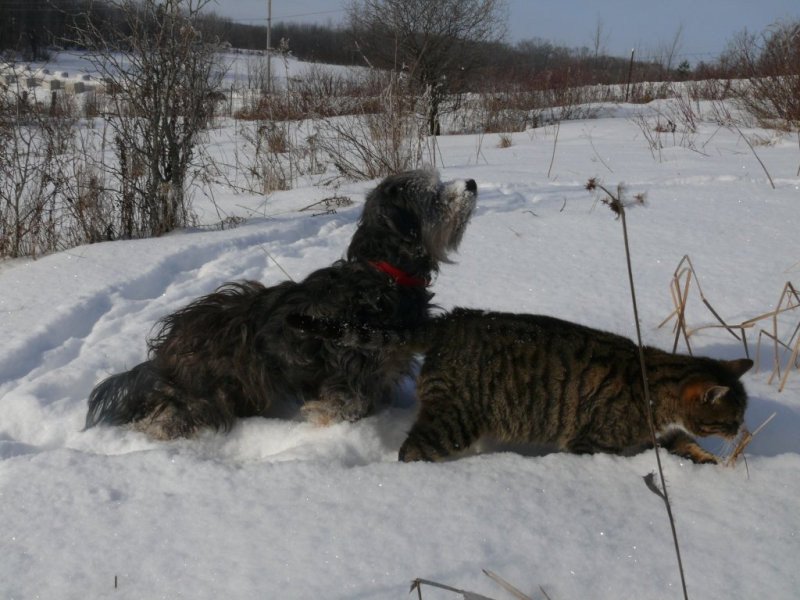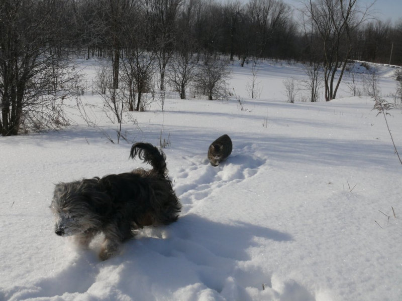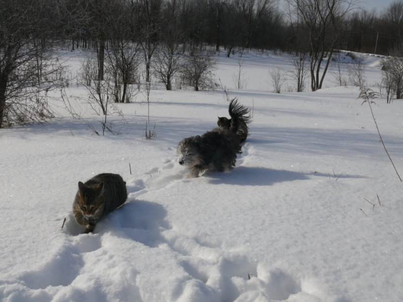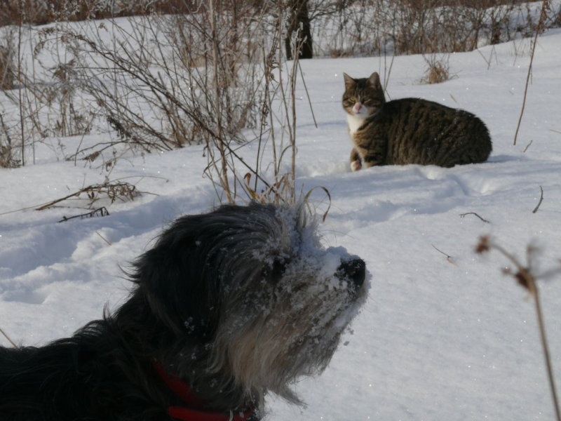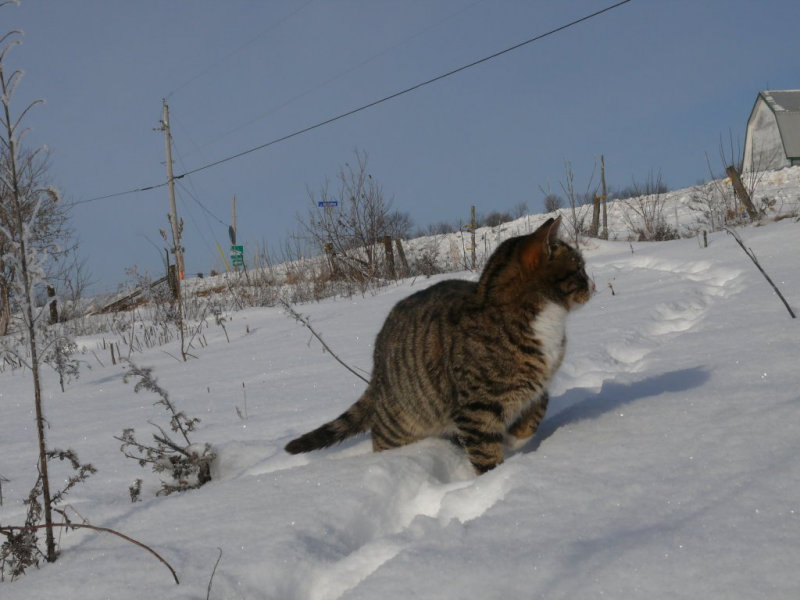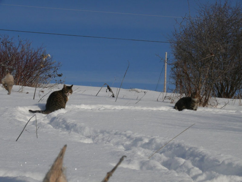 Un matin, sous un grand soleil, Mirette, maman chat, Patate et Poupouf sont partis admirer la beauté de la nature recouverte de givre juste devant le Val à l’âne.