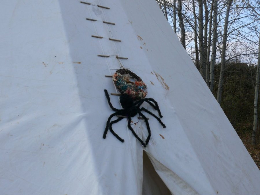 Une araignée géante surplombe l’entrée du tipi