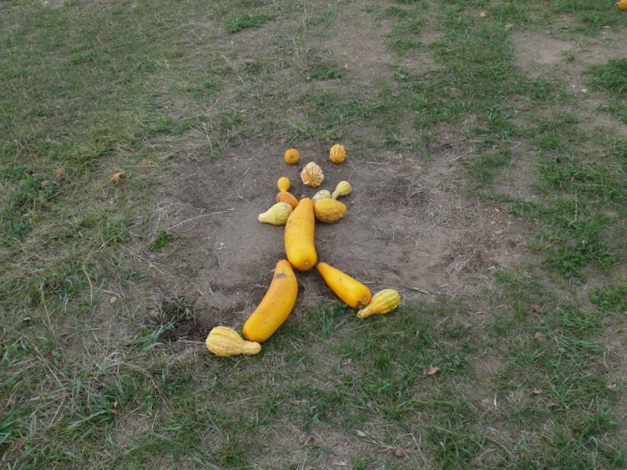 Un petit jeux de piste à base de coloquintes disposées sur le chemin devait mener les trois sorcières et les deux lutins à leur piquenique annuel.