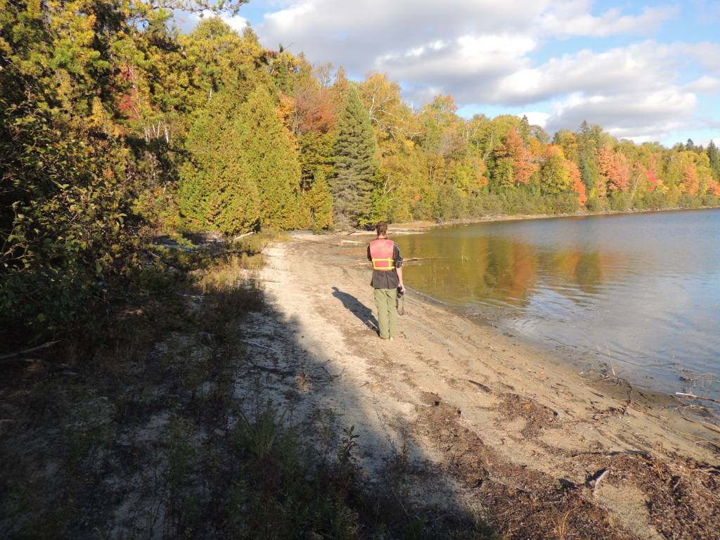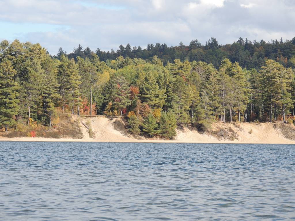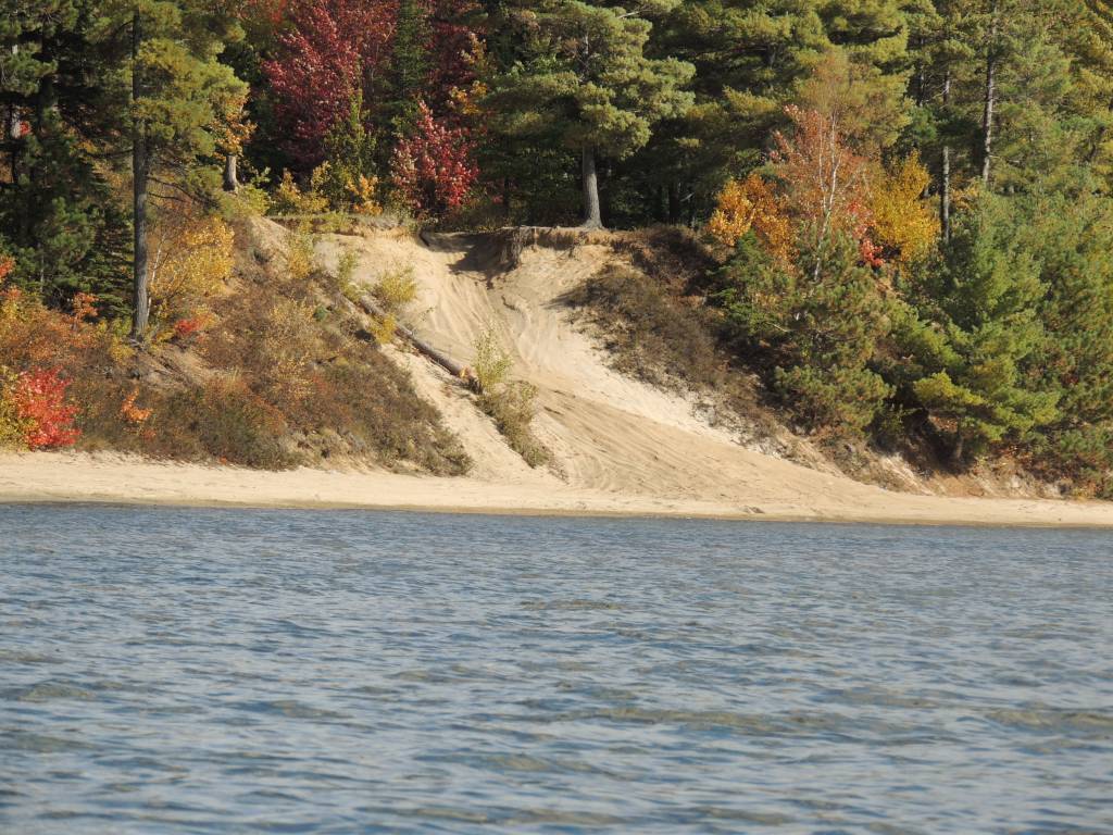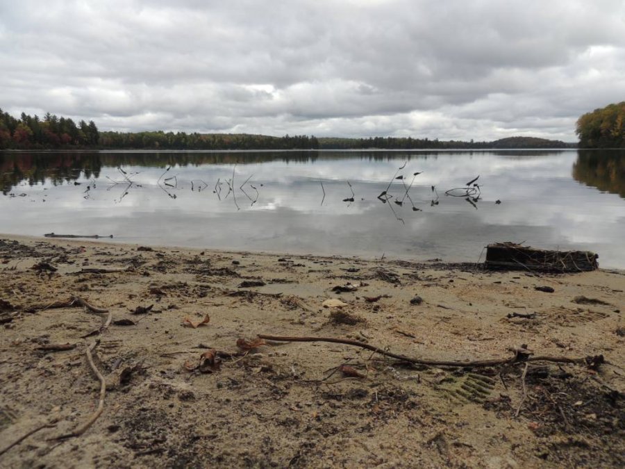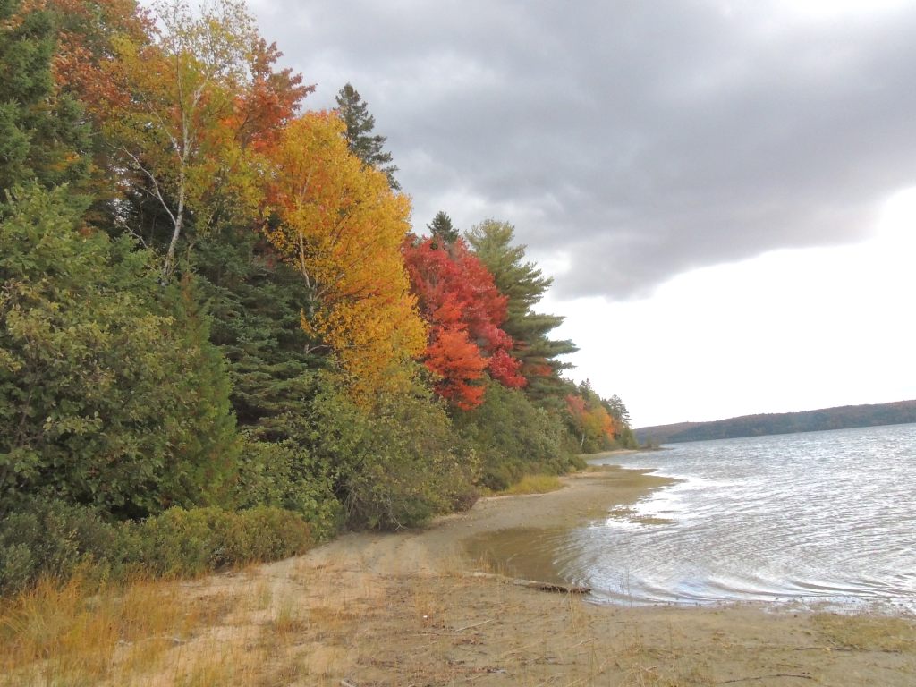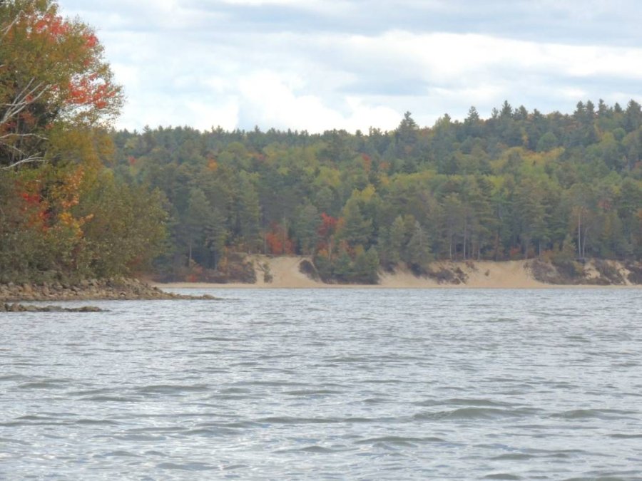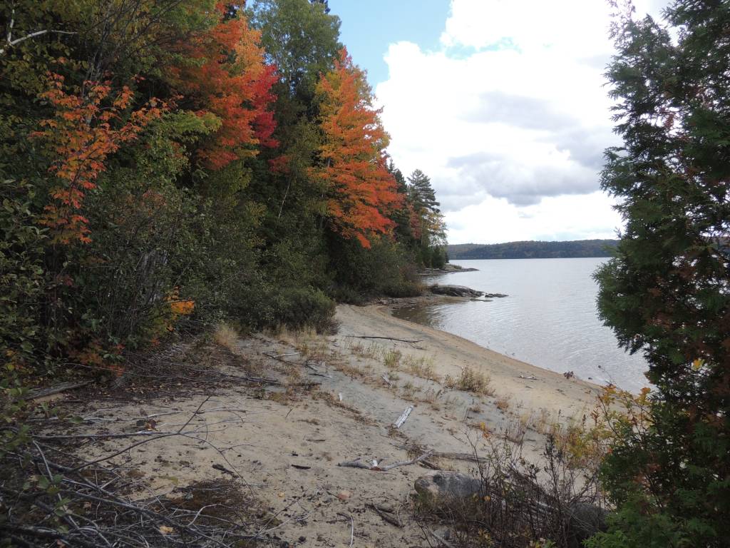Nous sommes arrivé au bout du lac, sur la plage immense qui a rendu ce lac célèbre. En été des fêtes s’y tiennent, des campeurs s’y chamaillent et cela fini parfois mal... à tel point que la sureté du Québec a du plusieurs fois intervenir et qu’il a été envisagé d’y fermer l’accès. Il y avait des flaques d’huile lors de notre passage et j’y ai déjà vu des déchets... Il n’y avait personne mais la plage était labourée de traces de quads. Ce lieu est d’une beauté remarquable, il côtoie des écosystèmes d’une richesse importante et mériterait plus de respect.