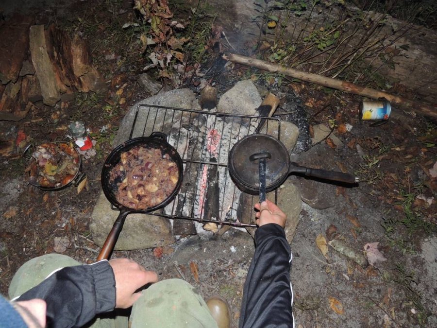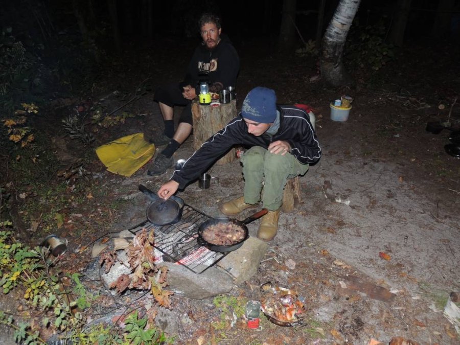 Une fois le camp de base installé, nous sommes partis à la découverte de la Baie à la truite. Nous avons exploré un marais, admirant la richesse des écosystèmes, navigué d’îles en îles, observant une petite colonie de cormorans, nous nous sommes faufilés dans d’étroits passages rocheux, fait des haltes sur des plages, observé des traces d’ours, de loups et d’une foule d’animaux divers... ça grouille de vie. Rentré au bivouac, nous avons cuisiné notre fameux corned-beef aux pommes avec une bonne plâtrée de lentilles et écouté le chant des huards.