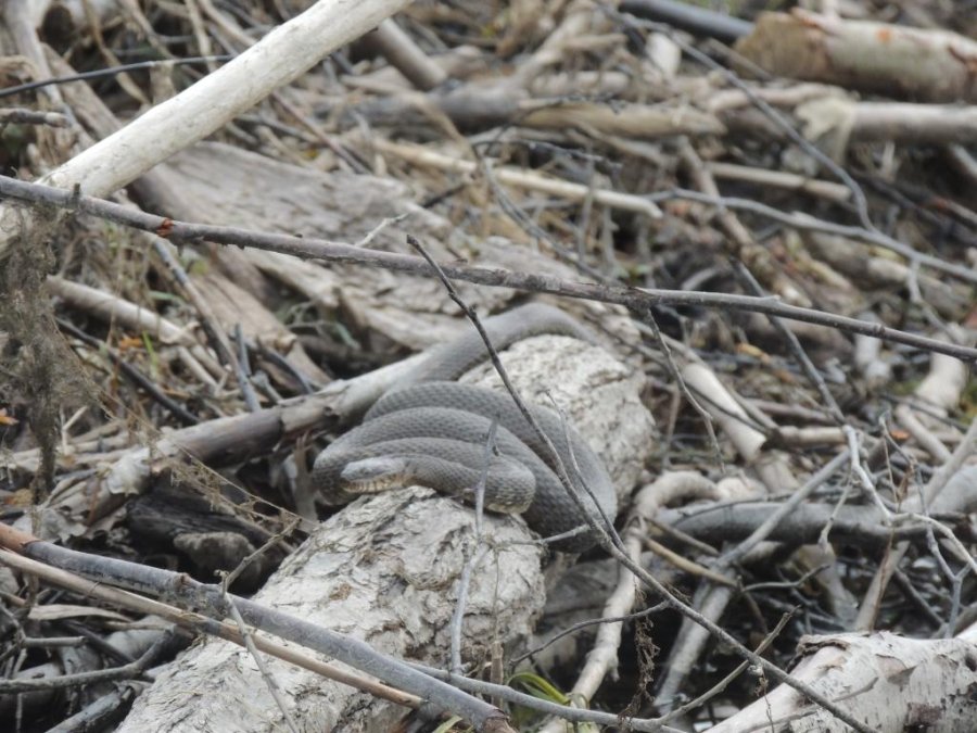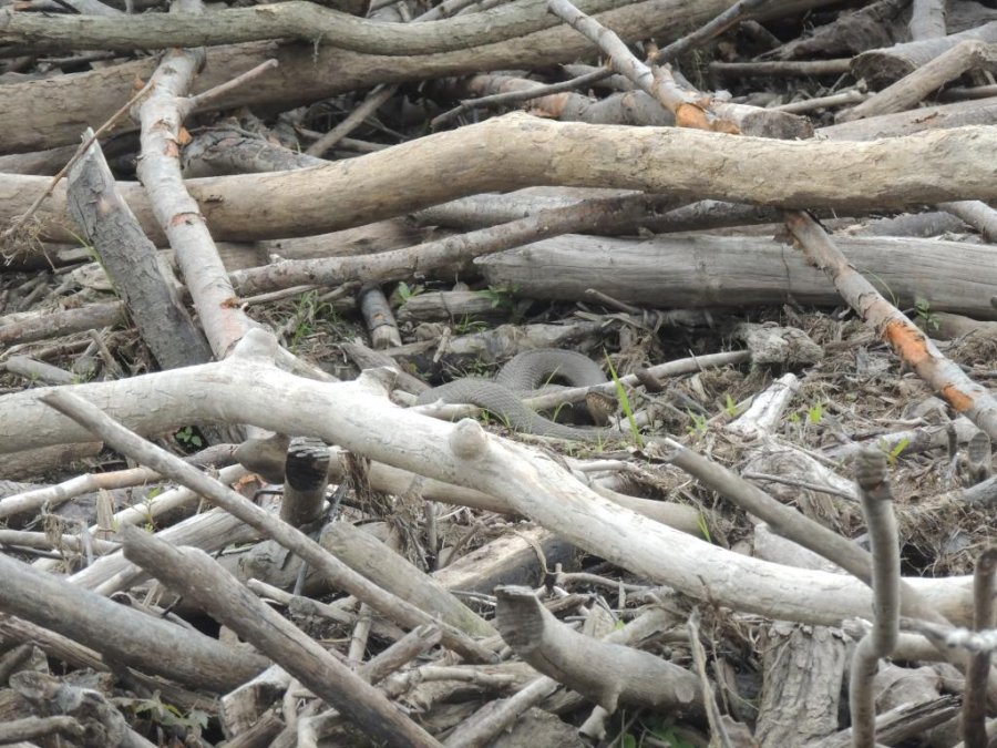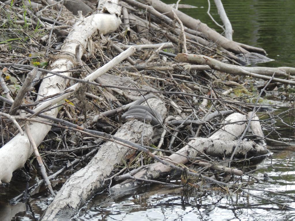 En juin, les eaux étaient anormalement hautes, les couleuvres dérangées, se tenaient dans des endroits inhabituel. J’en ai vu le long de chemins, sur des berges dans des lieux ou il n’y en a jamais d’habitude. Mais les plus belles observations, je les ai faites sur des cabanes de castor ou elles étaient en grand nombre.