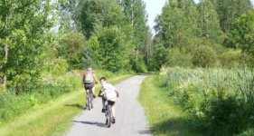 Les rails furent enlevés et l’ancienne voie de chemin de fer fut transformée en piste cyclable.