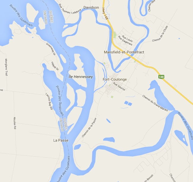 En aval de Fort-Coulonge, la rivière des Outaouais se divise en deux pour donner naissance à l’île du Grand Calumet qui fait 130,58 km2 de superficie.