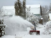 Le chasse-neige a du mal par endroit avec les premiers centimètres de neige verglacés et durs.