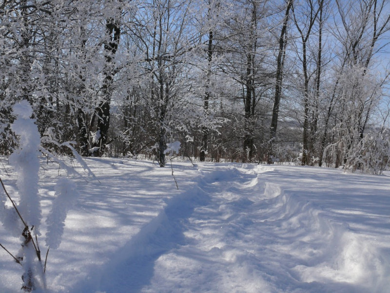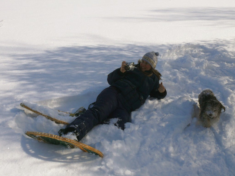 Souvent, on les voit accompagner d’une boule de poils qui les précède. Remarquez que par mimétisme avec la végétation environnante, la boule de poils est également givrée.