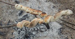 Les Indiens, les coureurs de bois, les explorateurs et maintenant les scouts, les campeurs fabriquent un pain cuit enroulé sur un bâton, la banique.