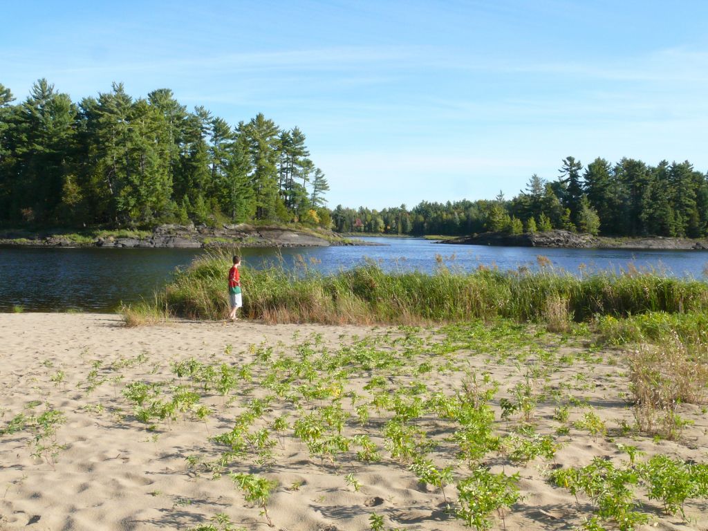 J’ai parcouru le Québec en tous sens et j’ai trouvé là le « ’Canada de carte postale »’ qui fait tant rêver lorsque l’on vit en Europe entre Fort Wiiliam et Rapides des Joachims, la rivière est splendide, bordée de plages, de falaises rocheuses, parsemée d’îles. Elle peut s’étaler sur plusieurs kilomètres de large ou se rétrécir entre des falaises, mais avec une majestuosité et une beauté sans cesse changeante. Par endroits des langues de sable immaculé avancent dans les eaux, dont la fameuse pointe aux baptêmes. Cet endroit est un lieu magique où tout voyageur, indien qui le franchissait subissait un baptême initiatique. Non loin de là, le rocher de l’oiseau, une falaise qui plonge dans les profondeurs insondables de la rivière est ornée de peintures rupestres. De nombreuses légendes indiennes parlent de cet endroit majestueux. On peut monter au sommet de la falaise et y découvrir des paysages merveilleux.