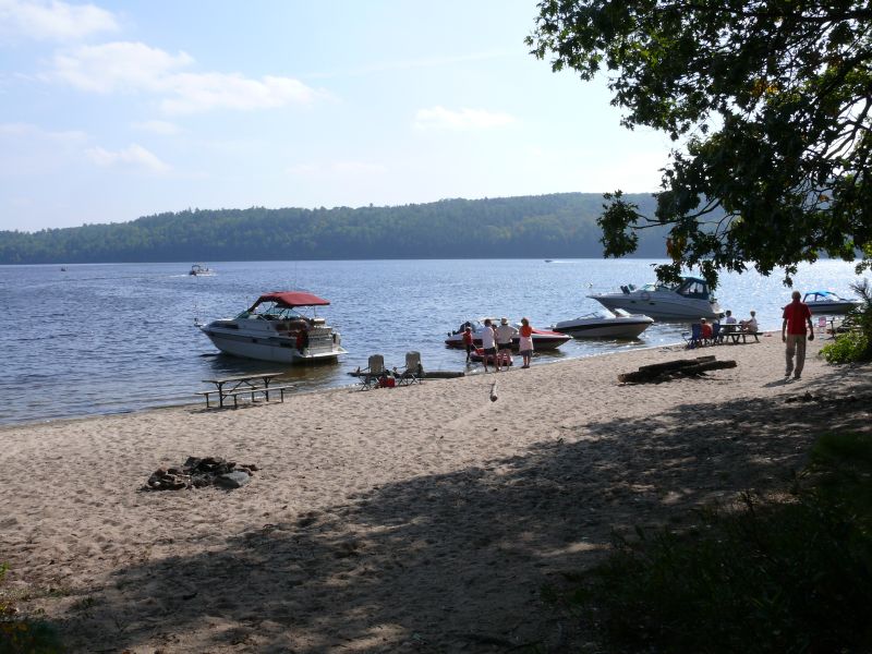 La région de Bristol, Norway Bay possède de belles plages, dont certaines aménagées, mais elles bordent des zones de chalets et sont souvent achalandées. Tout autour de l’île du grand calumet, il y a des plages magnifiques et pour certaines bien cachées et magnifiques. Les plus connues et les plus accessibles sont celles de la ’’Côte Jaune’’ sur la pointe nord de l’île, mais attention, l’eau est profonde et il y a des forts courants, nous déconseillons la baignade, malgré sa beauté, l’endroit est dangereux. Le rocher fendu possède de très belles plages dans des paysages magnifiques mais les sociétés de rafting les ont accaparées. L’endroit est magnifique, on peut y camper, y faire du canoë du kayak dans des paysages grandioses.