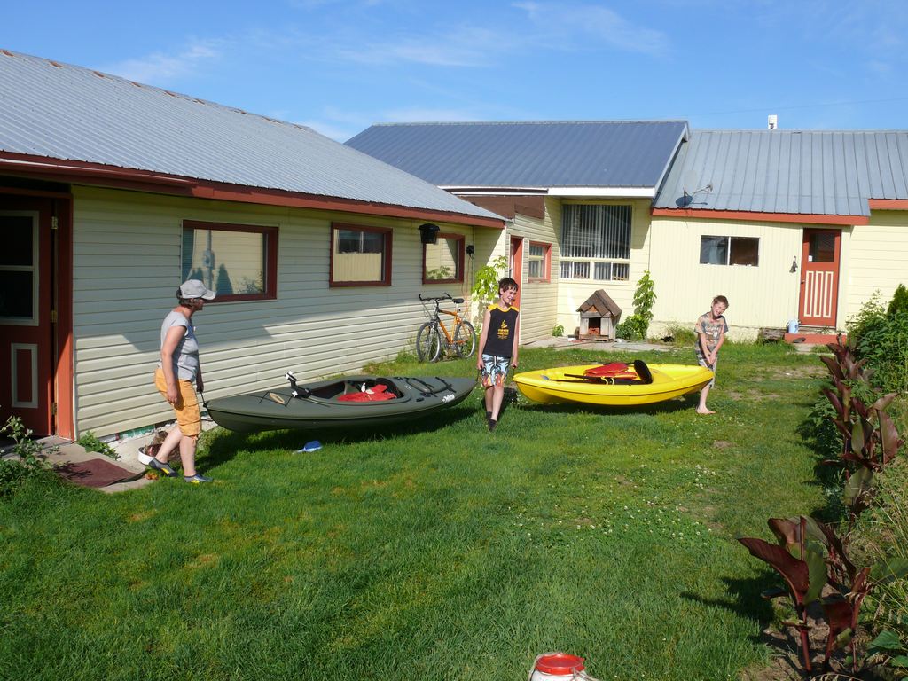 Nos deux modèles de Kayak, en jaune l’autovideur, en vert le Kayak traditionnel.