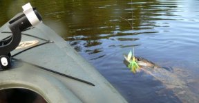 Lors de ma première sortie en kayak de pêche, je méditais en pensant qu’assis aussi bas sur l’eau et dans une embarcation si petite, un beau poisson au bout de la ligne devrait être sportif à retirer... Je fus tiré de mes pensées par une attaque de brochet assez violente.