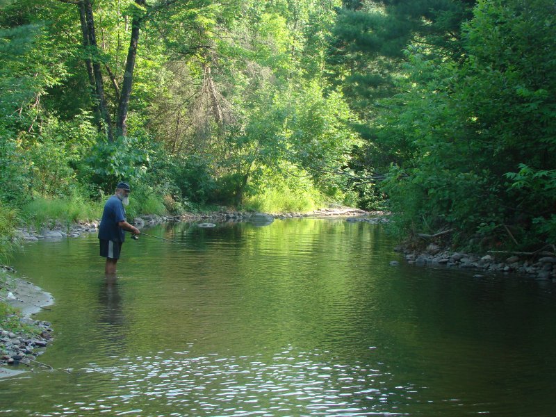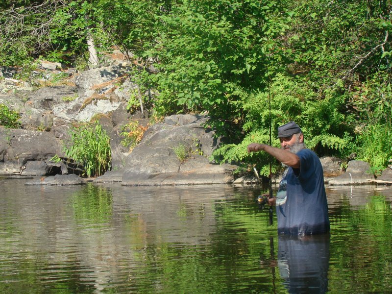 J’ai attrapé avec des cuillères mouche en ultraléger quelques très gros crapets soleil, des achigans, des ménés, des truites de ruisseau. Mon hameçon est sans ardillon, ce qui me permet de remettre les poissons à l’eau sans blessures.