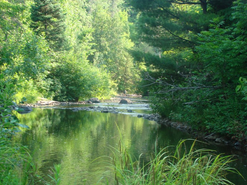 Je parcours la rivière, passant des rapides, des radiers, des chutes, des barrages de castors et découvrant sans arrêt de nouveaux paysages.