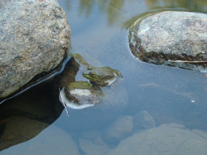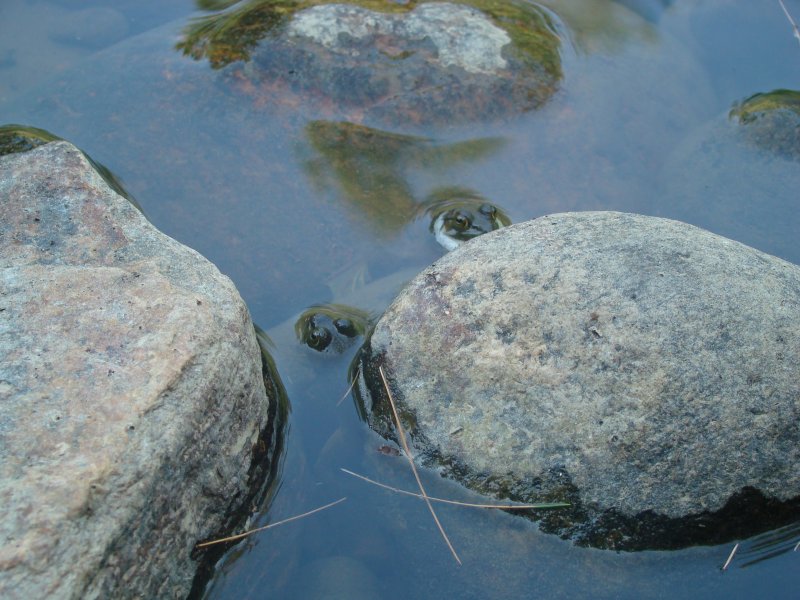 Cette année, il fait très sec. Deux mois sans pluie, des températures très chaudes, les sous-bois sont secs. Les grenouilles se sont réfugiées dans les ruisseaux et il y en a partout...