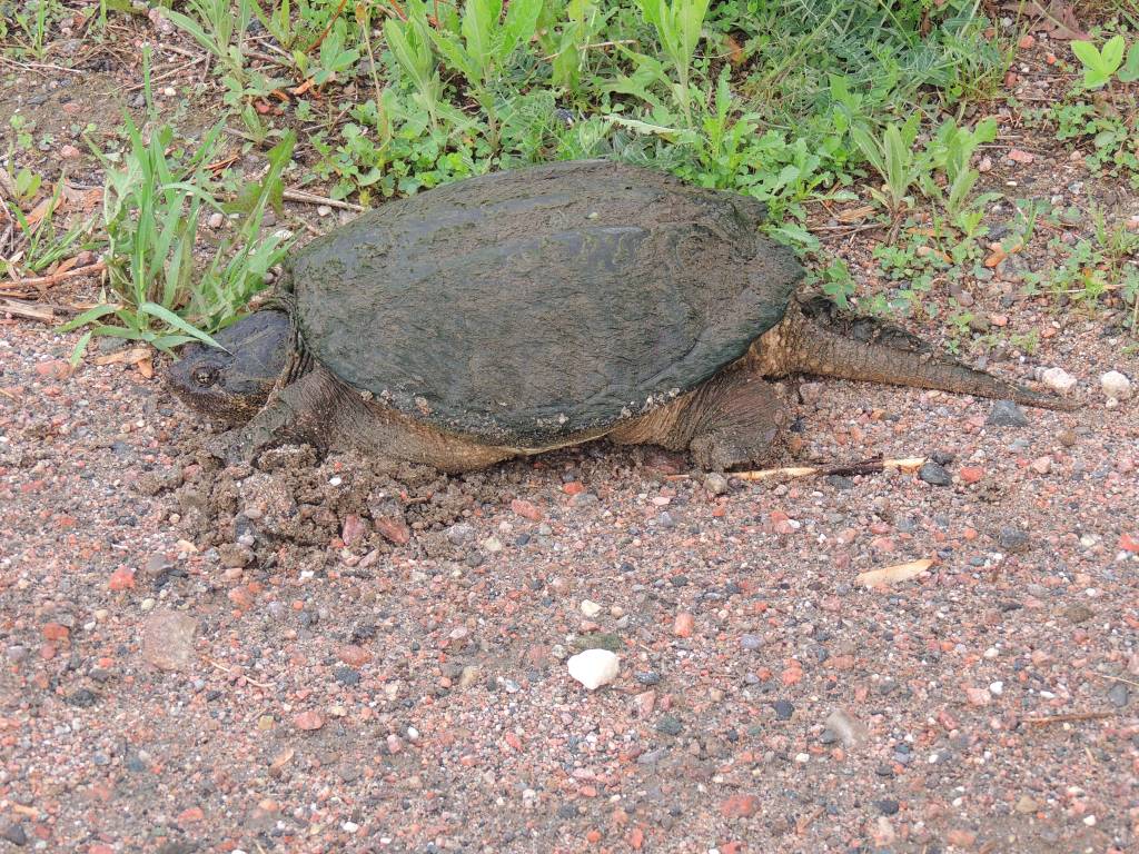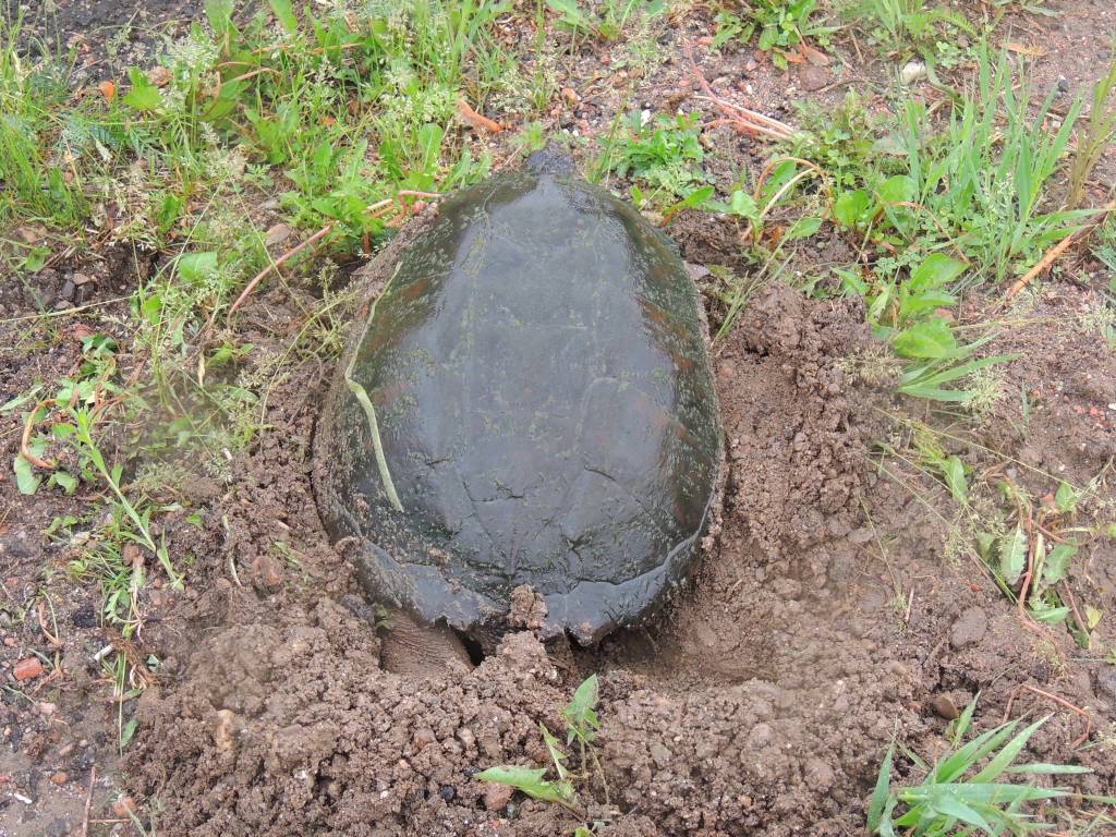 C’est ainsi que cette année, j’ai vu une tortue vouloir pondre dans un tas de saletés diverses sur un pont de bois au-dessus d’un ruisseau et une autre au milieu d’un chemin ouvert à la circulation automobile.