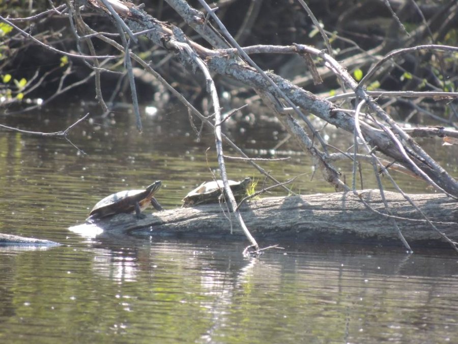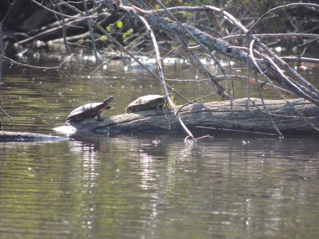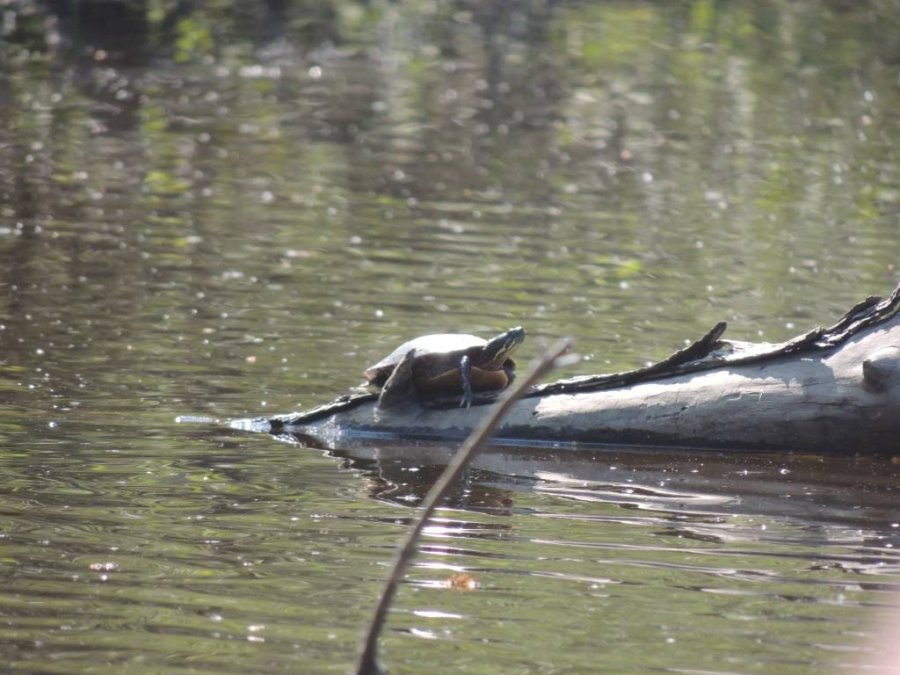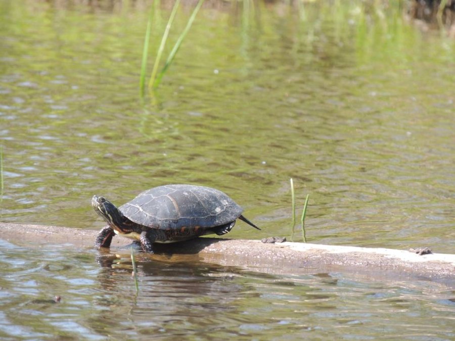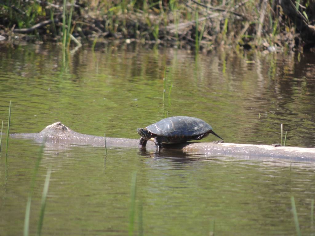 On a vu de nombreuses tortues, des rats musqués, des rapaces, une paruline flamboyante, des bécasseaux minuscule ?, une maman oie et ses petits ... et entendu des parades nuptiales de gélinotte.
