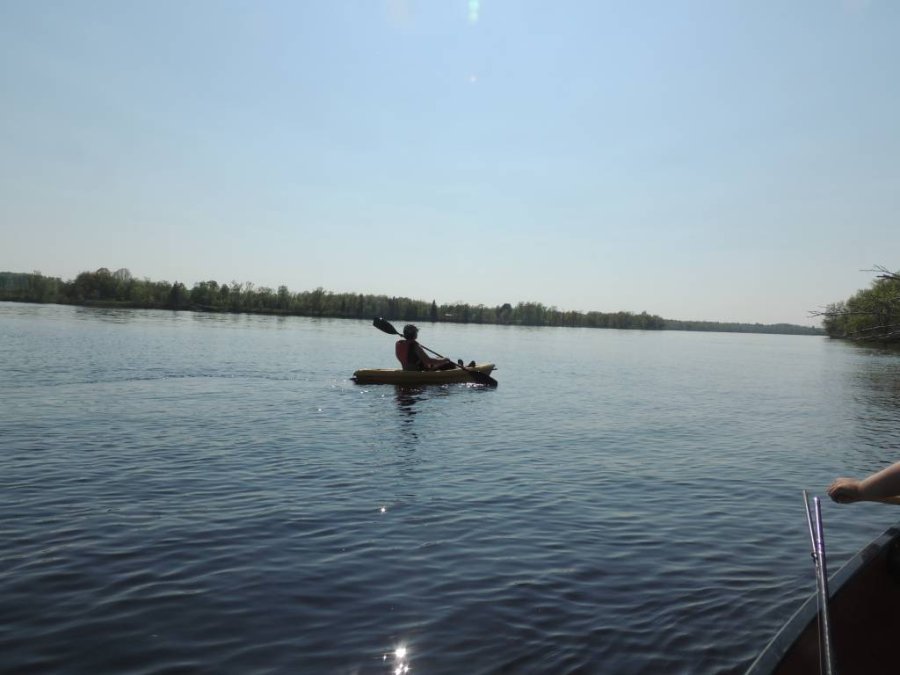 Cet après midi, on a pris le canoë et un kayak autovideur et nous sommes parti explorer l’estuaire de la rivière qui coule devant chez nous et nous avons rejoint et remonté la rivière des Outaouais.
