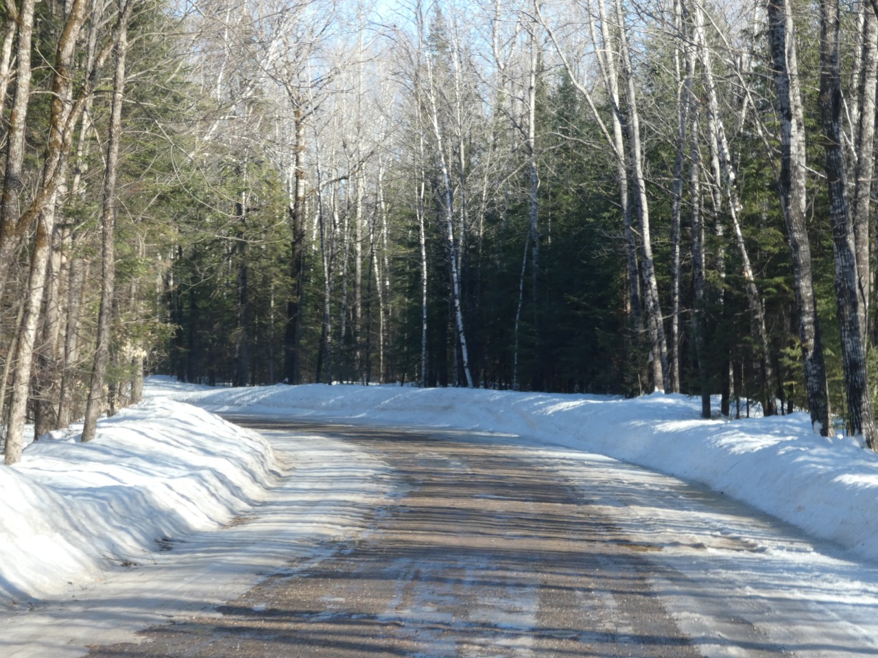 Les chemins sont par endroit couvert de glace puis un peu plus loin dégèlent et sont boueux avec de profondes ornières.