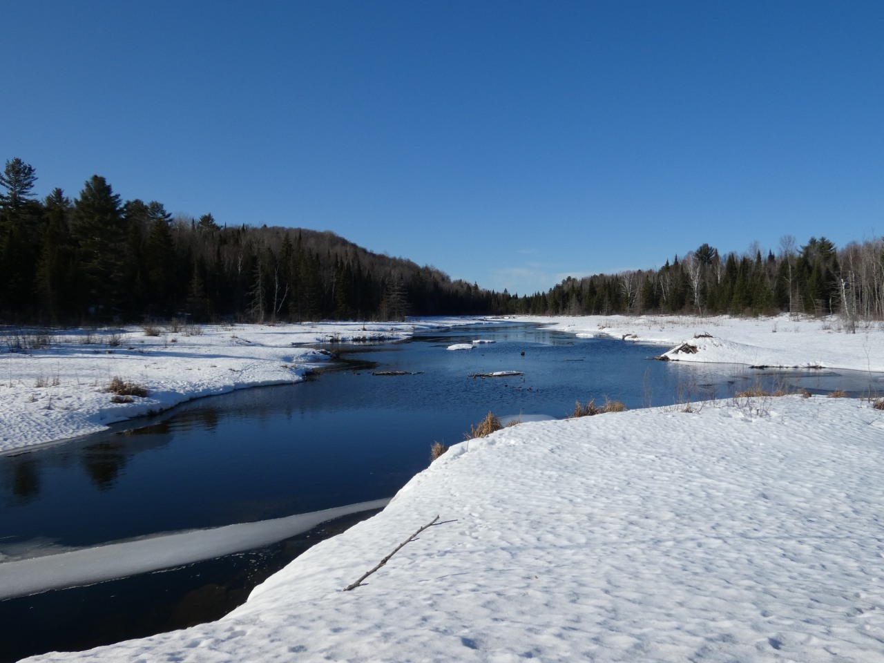 Les rivières sont encore couvertes de glace.