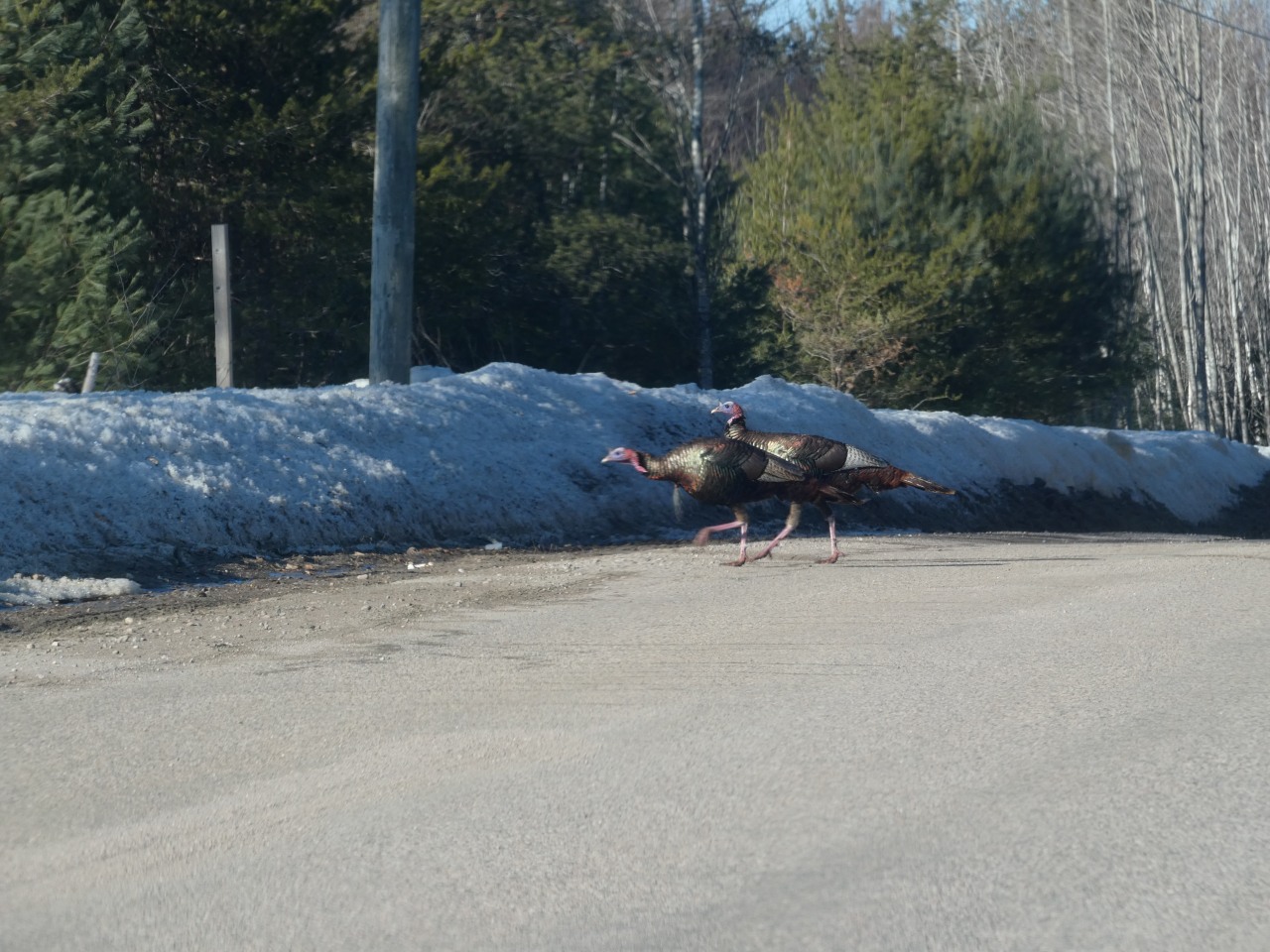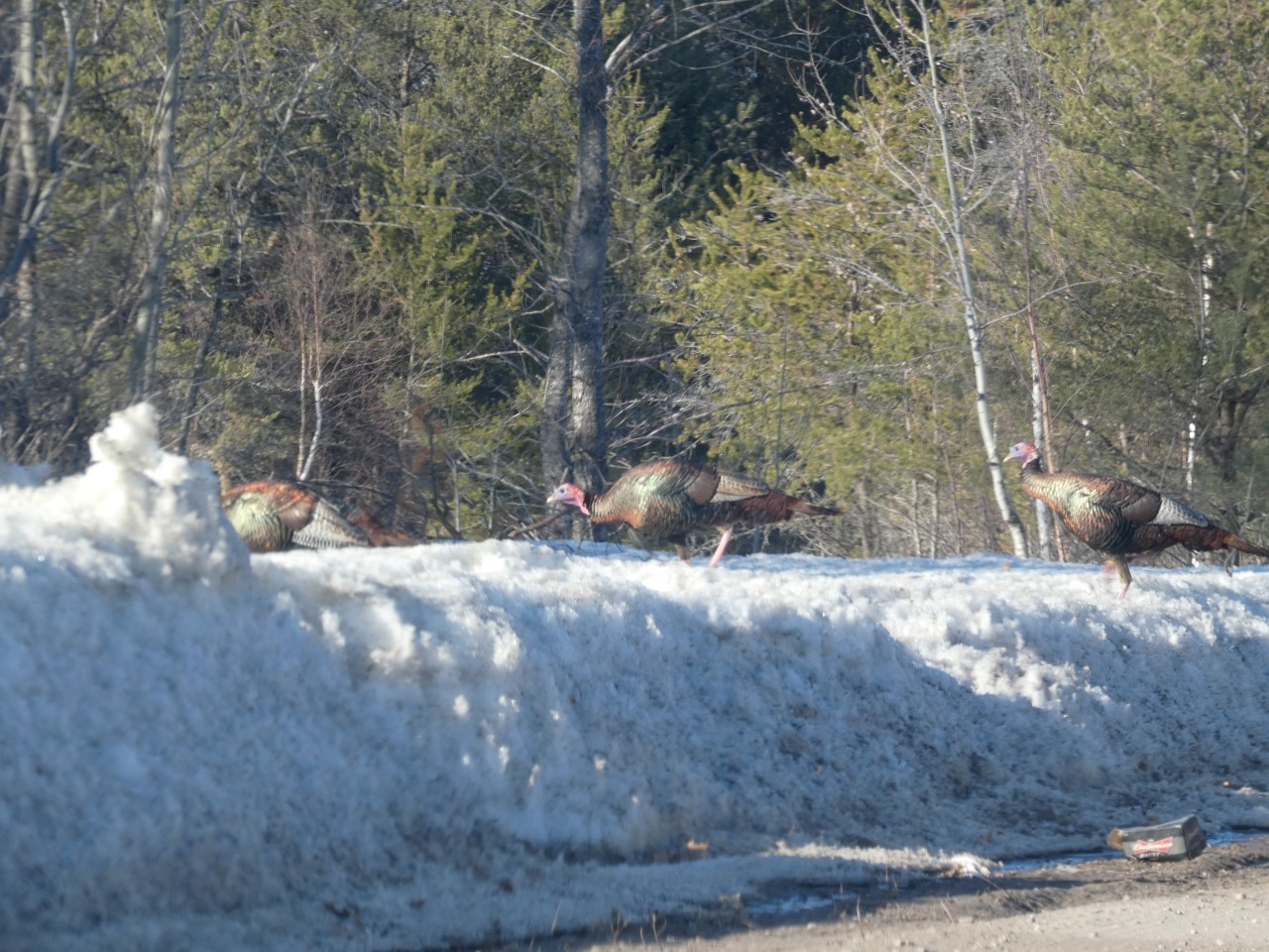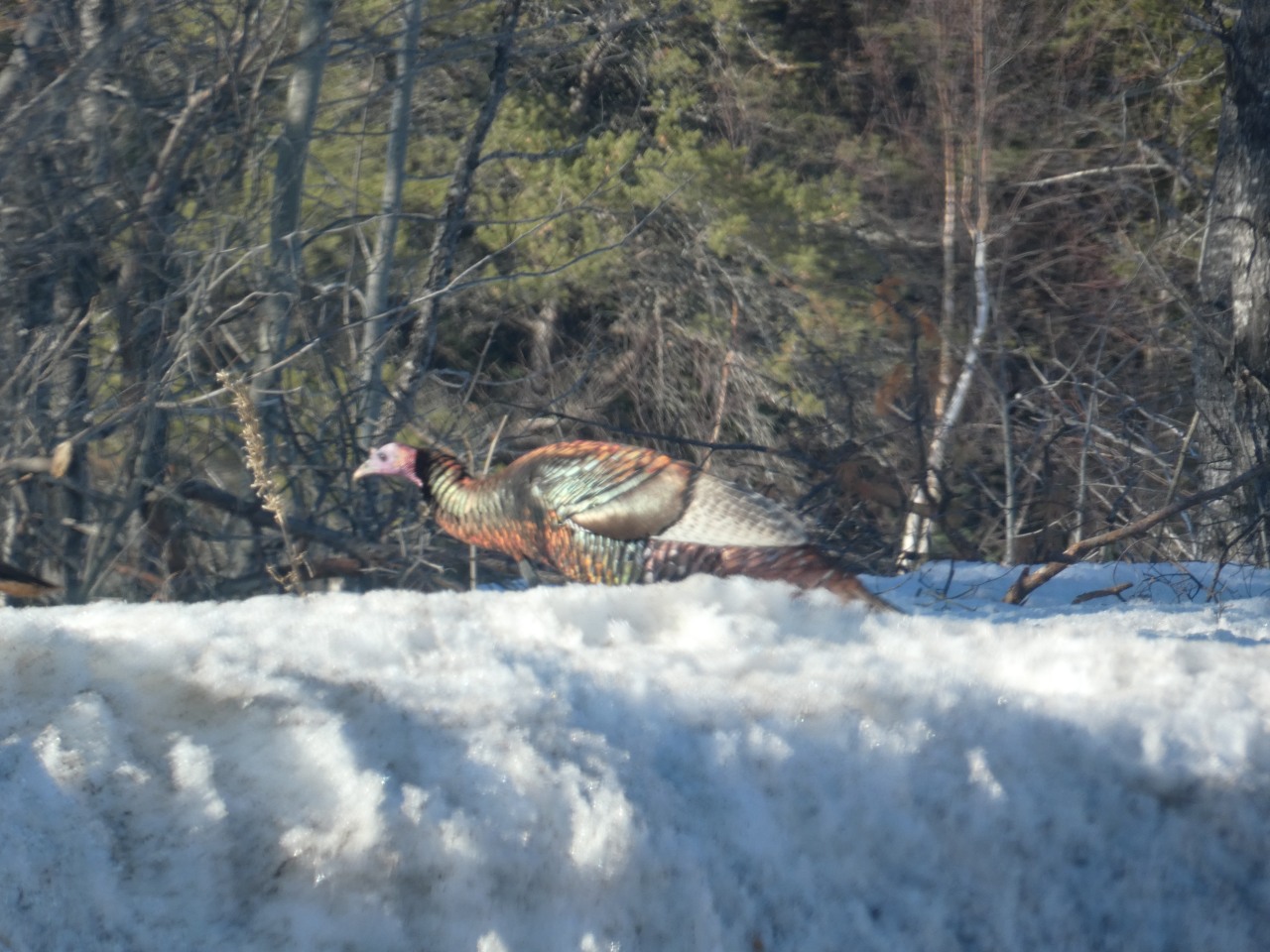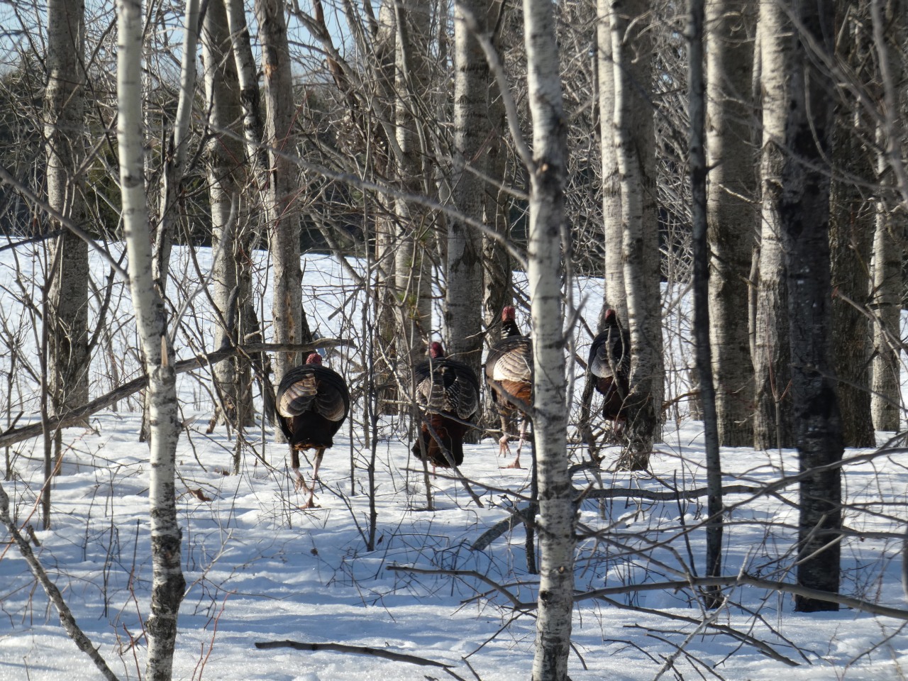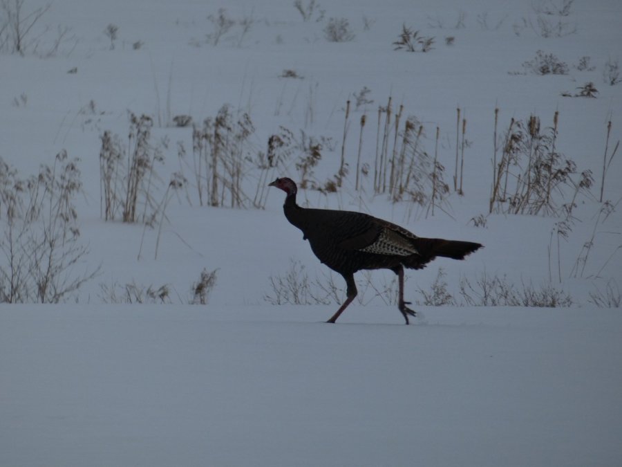 Au menu du diaporama, des dindons sauvages grignotent une balle de foin ou se baladent, des Plectrophanes des neiges, des cerfs de virginie, une moufette, des paysages.