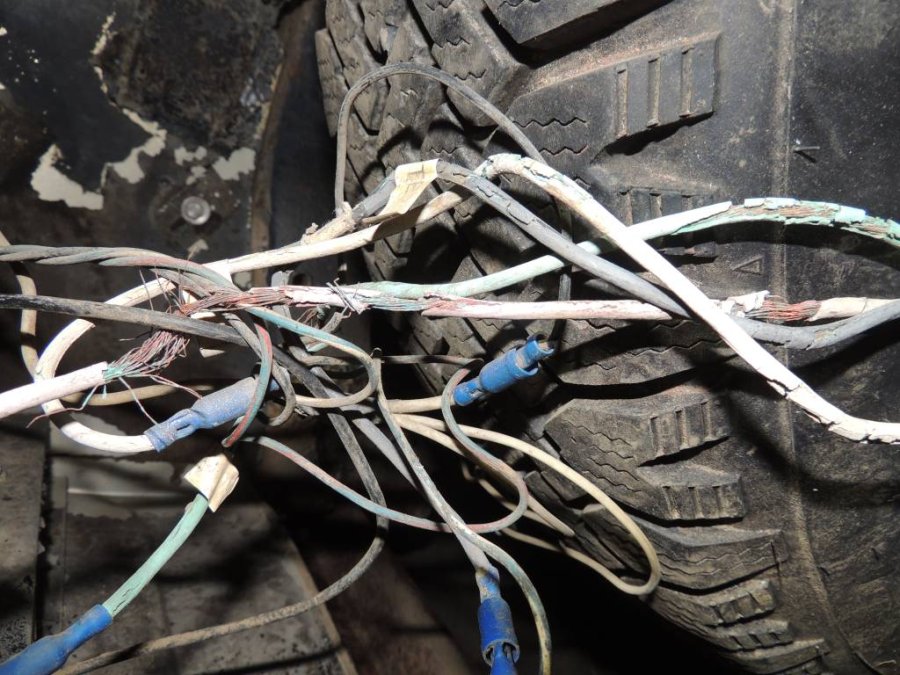 L’électricité au niveau des phares a été refaite. Le fil utilisé est %& ?%& une cochonnerie sans nom. ça devrait être illégal de vendre ce genre de fil. Dans les ailes avant, à l’arrière, sous le véhicule, les fils se sont décolorés et les gaines sont tombées en poussière où ce sont fissurées. Résultat, des fils à nu par endroit ! J’ai du refaire une partie du faisceau électrique.