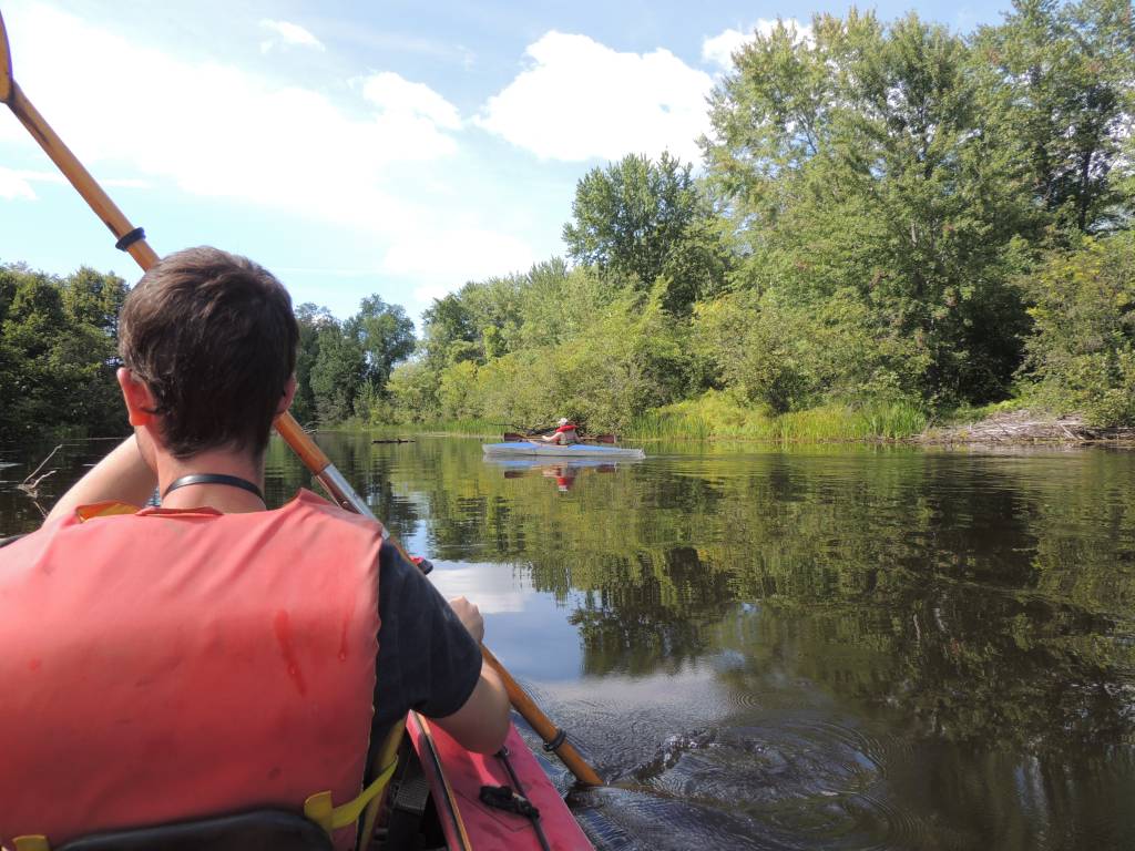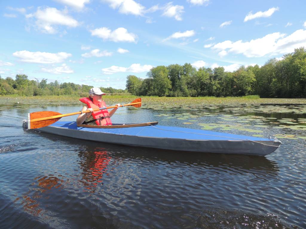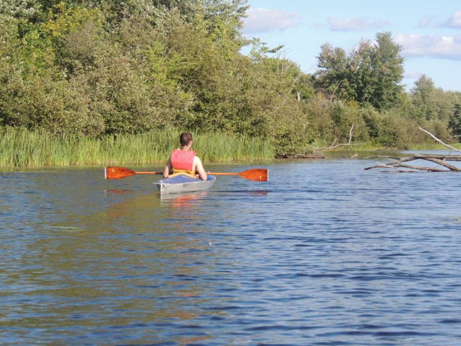 Hier, nous sommes partis faire une petite balade avec un Klepper T9 et un Aerius quatro bi place sur le rivière des Outaouais. Le Klepper T 9 est un modèle de kayak pliant monoplace de légende fabriqué entre 1959 et 1970, il est considéré comme un des meilleurs kayak de randonnée jamais construit. J’ai pu constater sa grande maniabilité dans les marais que nous avons parcouru. il se faufile avec aisance sur les hauts fond, maniable, il est très réactif. Monique qui l’a manoeuvré durant presque toute la sortie l’a ensuite prêté à Antoine. Lorsqu’elle est rentrée dans la place avant de l’Aerius, elle a tout suite regretté son T9 ! Elle se sentait plus à l’étroit ! Elle trouve le T9 stable et se sent en sécurité.