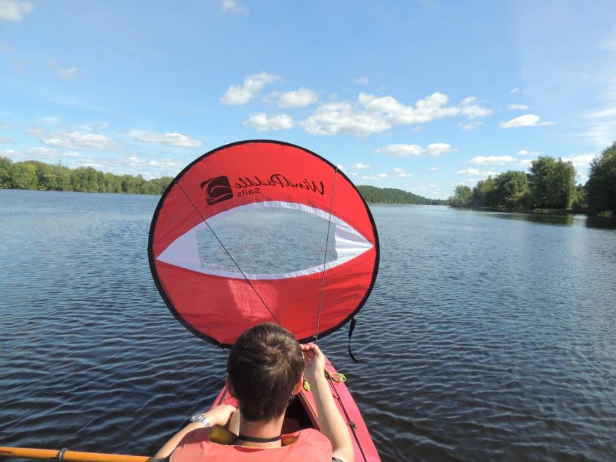 Quelques minutes plus tard, une autre risée. On lance la voile et cette fois on a pu naviguer à la voile plusieurs minutes. Ce fut grisant. Cette voile est vraiment plaisante.