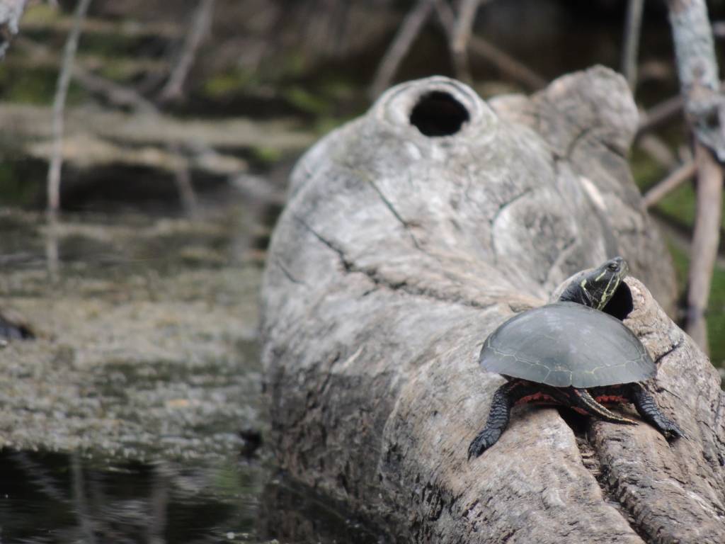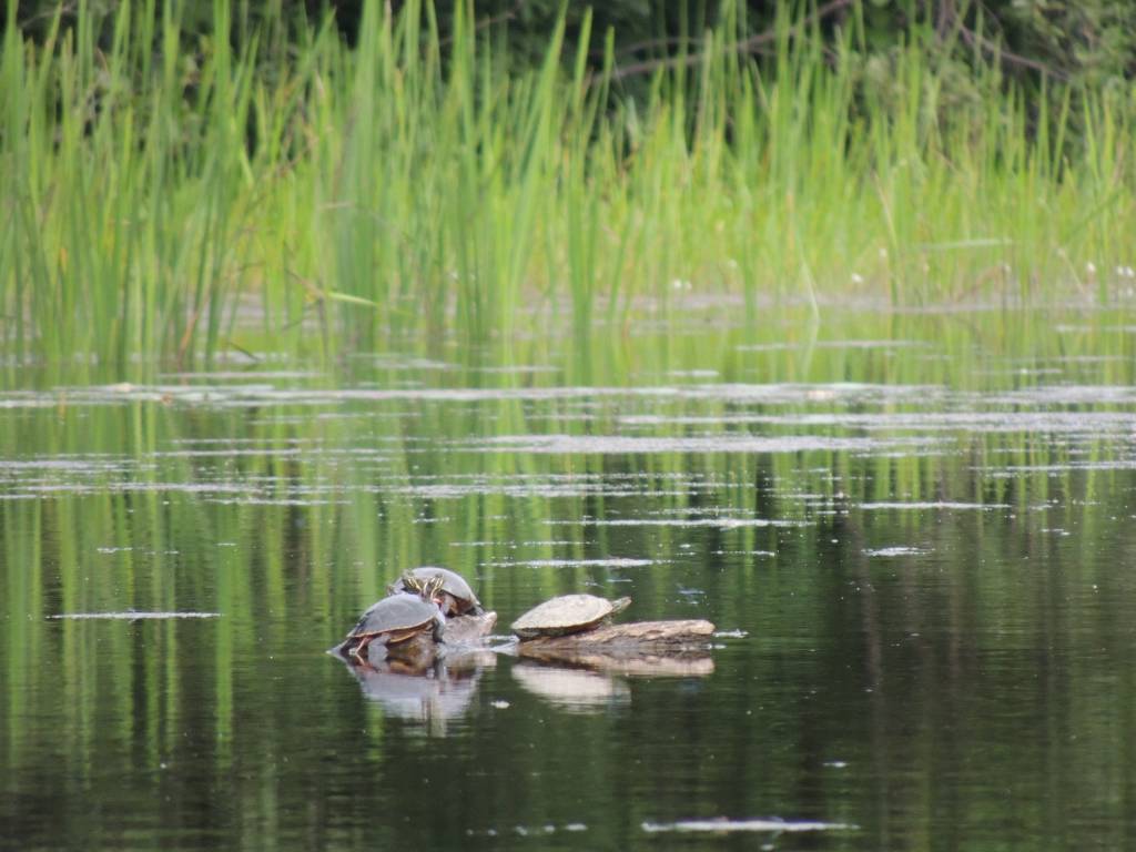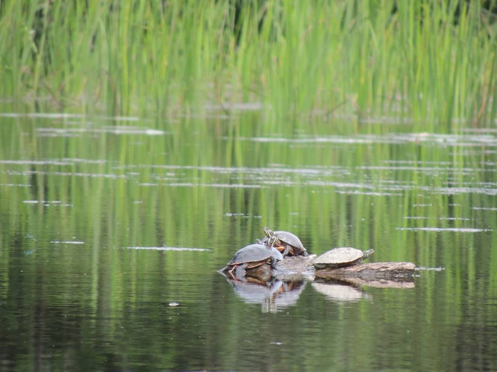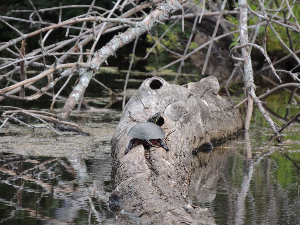 Lors d’une sortie en canoë, j’ai eu le bonheur d’observer quelques tortues perchées sur des bois et prenant le soleil.