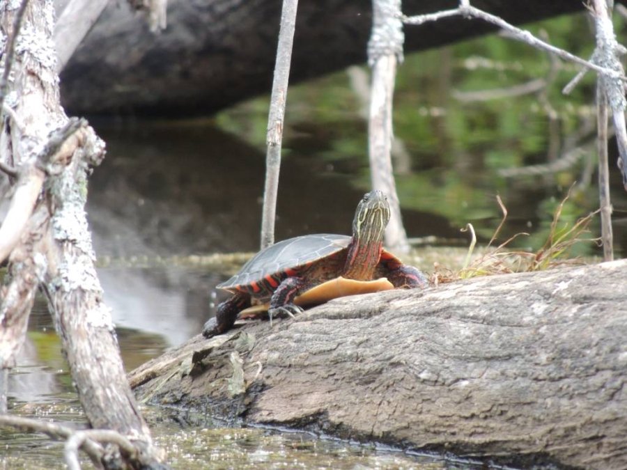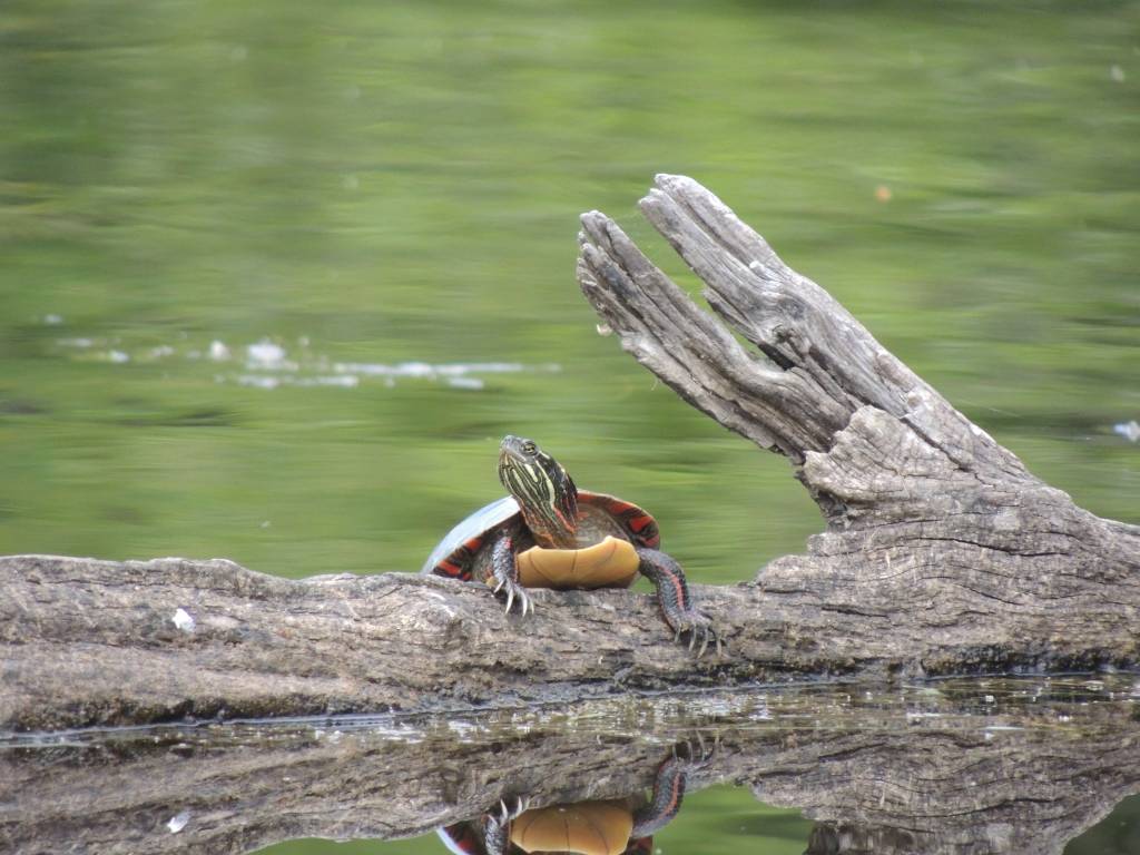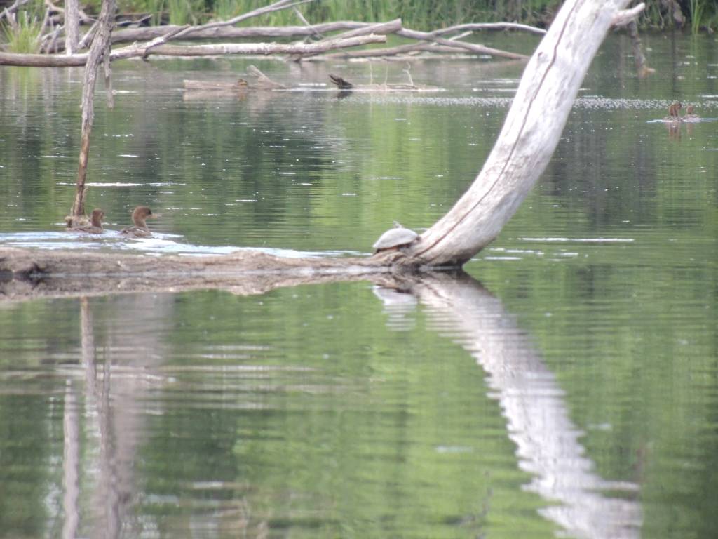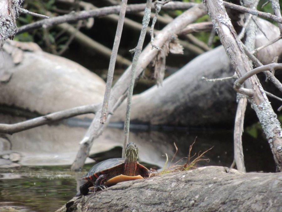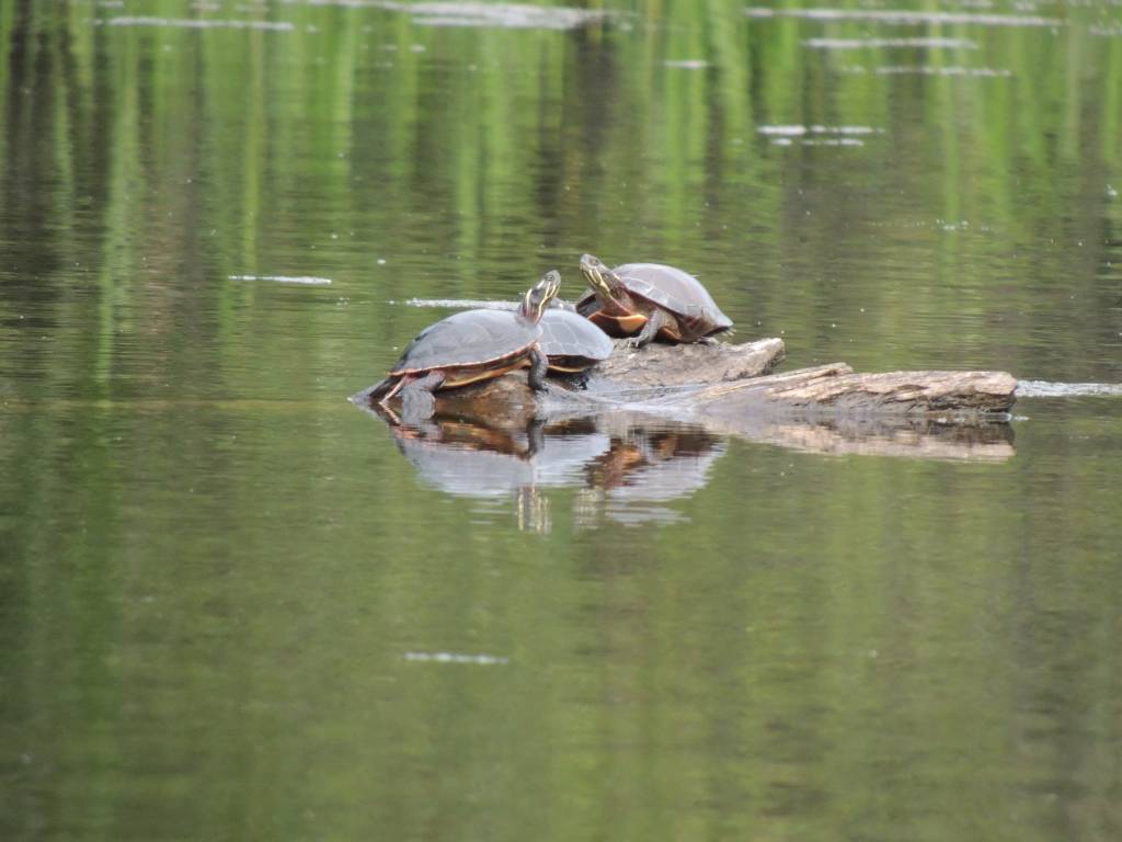 Lors d’une sortie en canoë, j’ai eu le bonheur d’observer quelques tortues perchées sur des bois et prenant le soleil.