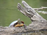 Au retour, on a eu le bonheur de voir tout un tas de tortues de deux espèces différentes dont 4 sur un même tronc d’arbre exigu !