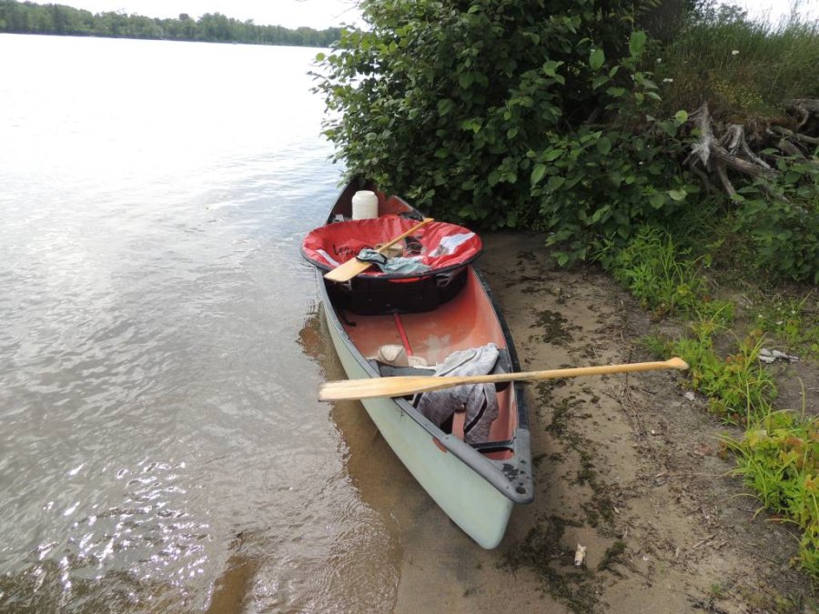 Je prend ma voile Wind-paddle toute neuve pour l’essayer sur mon canoë.