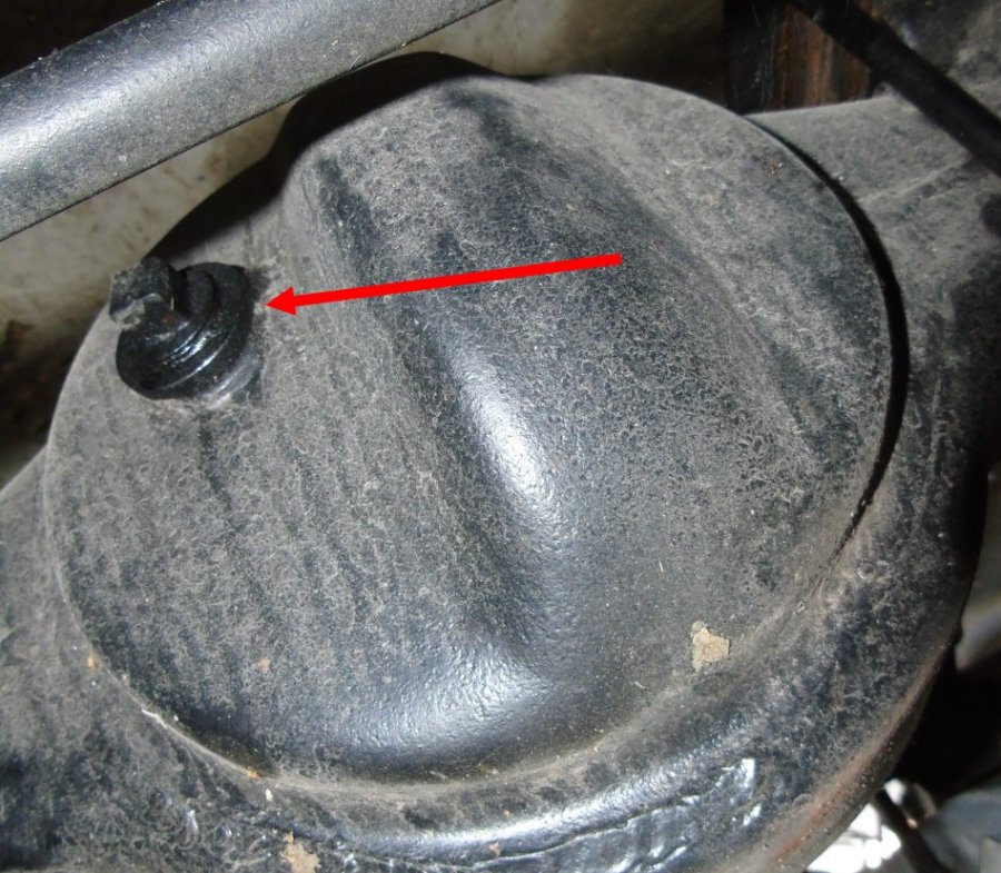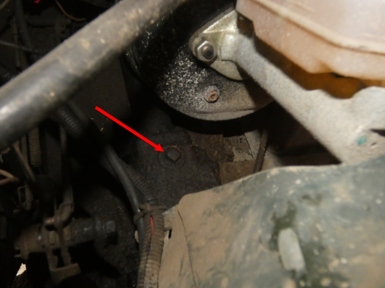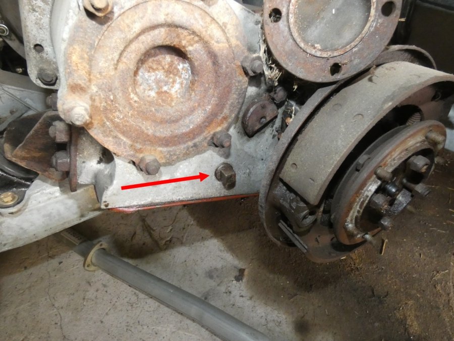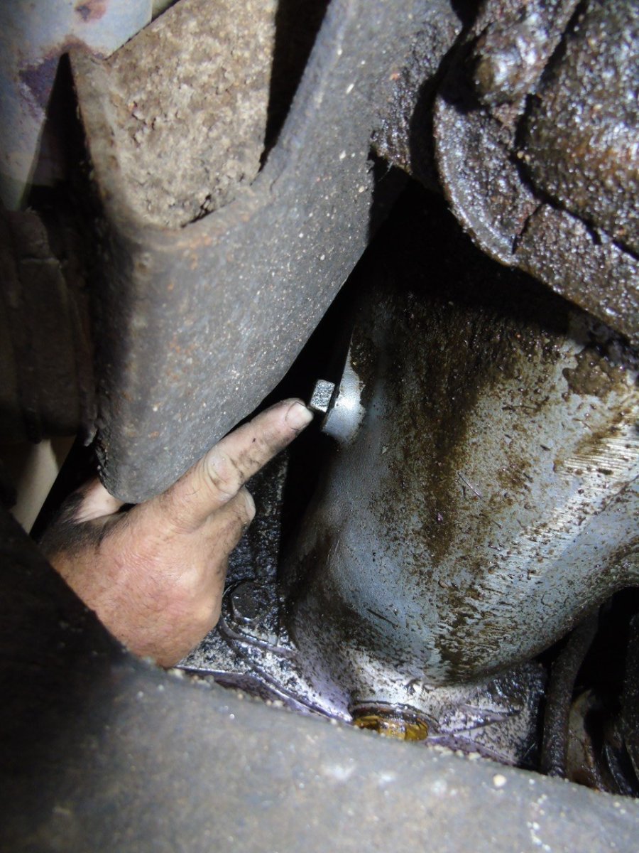 - Il faut se coucher sous le land, à l’aplomb de la portière coté conducteur. On y voit la traverse de la boite de vitesse. Le bouchon de contrôle du niveau se trouve à mi-hauteur sur la boite de vitesse coté moteur de la traverse.