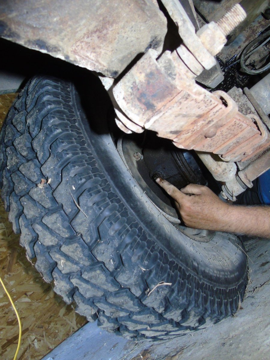 - Il faut se coucher sous le land coté passager devant la roue arrière.