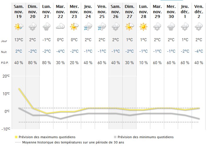 la température descend un peu (entre 5 et 8 degré)mais par contre on a eu du brouillard très dense depuis 2 jours.